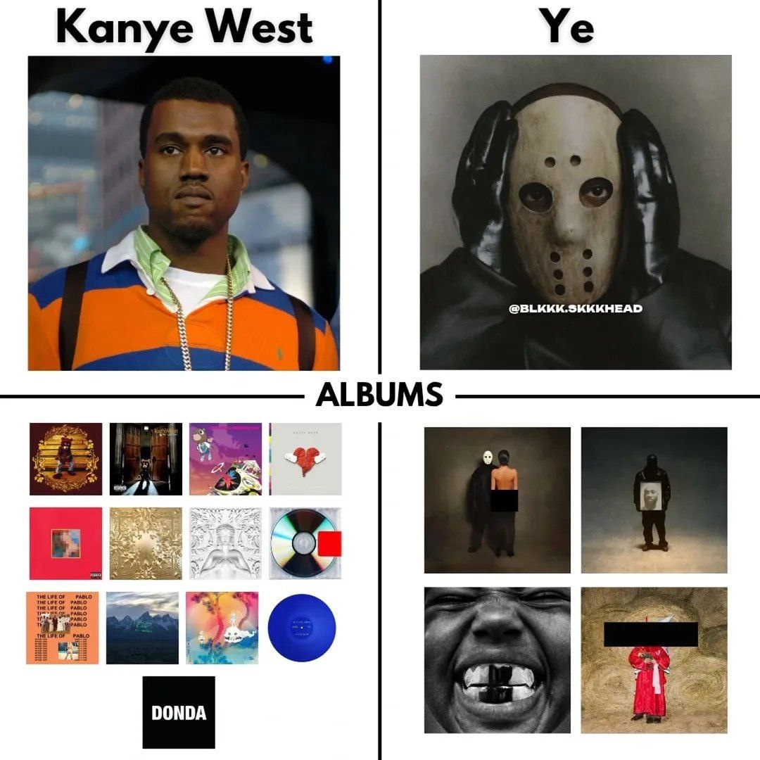 Фанаты создали коллаж, сравнивающий старую эру Канье и новую эру Йе. От дискографии до твитов и идеологии.