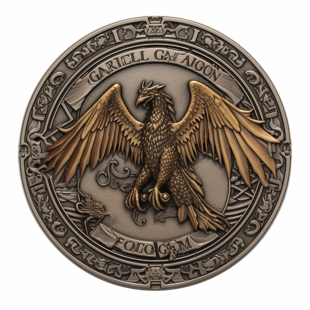Создано на основе запроса: a collectable coin, no background, magic the gathering art style, high definition