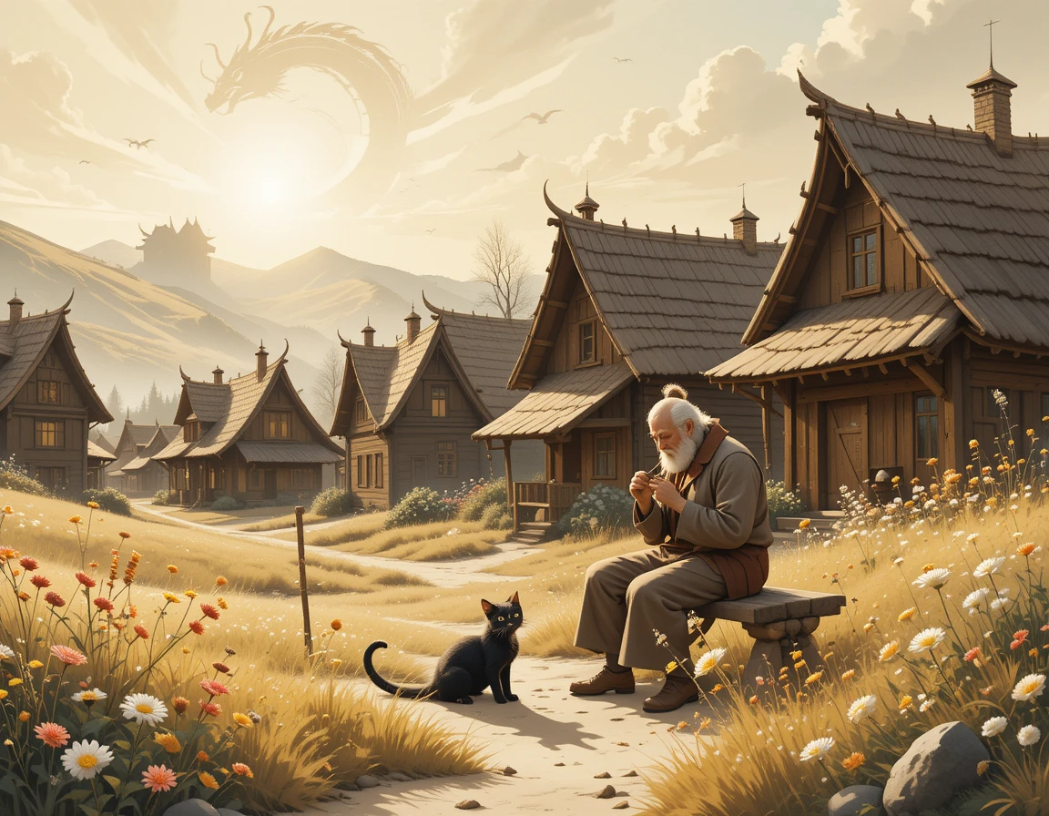 Мастер, певица и кот с норовом Жил-был мастер Товиас в деревне Песнецвет, где дома пели ветром, а ручьи звенели, как струны. Не кузнец он был, не мечник, а делал флейты и дудки — из ясеня, из ольхи, из берёзы белой. Вырежет, дунешь — и мелодия льётся, будто птицы на ветках расшумелись. Руки у него были старые, но ловкие, борода седая, а глаза смеялись, как у мальчишки. Жила с ним внучка Лира — голос у неё был звонкий, как капли в колодце, и пела она так, что цветы на лугу к ней тянулись. А ещё был кот Мурзик — чёрный, с белым ухом, и говорил он, как человек, хоть и ворчал больше, чем мурлыкал. — Опять дудки пилишь? — бурчал Мурзик, лёжа на лавке. — Дай поспать, а то мурлыкать не буду. — Мурлыкай, не мурлыкай, — хмыкнул Товиас, вырезая флейту, — а без тебя песня не та. Лира засмеялась: — Мурзик, ты у нас солист, не отлынивай! Так и жили они, пока однажды небо не потемнело, и с гор не прилетел дракон Громозуб — чешуя серая, глаза как угли, а голос как гром перед бурей. Сел он на площадь,