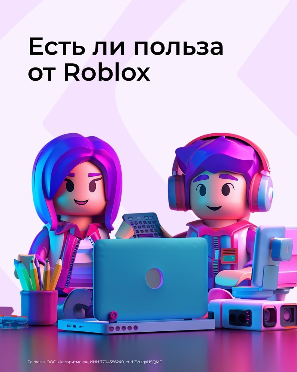 Roblox — пустая трата времени или билет в IT Более 3 миллиардов детей не представляют жизни без платформы и ежедневно уделяют ей несколько часов в день 😮 Кажется, вам тоже стоит познакомиться с Roblox и узнать, есть ли от него польза — читайте карточки. Если ваш ребенок много времени проводит в Roblox, запишите его на наш курс «Геймдизайн в среде Roblox Studio» 👉 https://spb-vb.algoritmika.org/ru/coding/gamedesign. Ребенок познакомится с платформой для создания игр, поймет, как добавлять детали в игру и настраивать камеру, сам придумает сюжет игры и дизайн персонажей. А преподаватель поможет в реализации идеи.