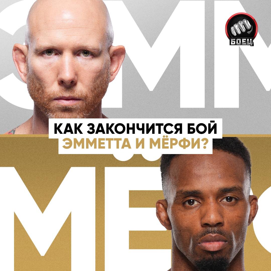 Время прогнозов. Обсуждаем в комментах, как закончится главный бой UFC Вегас 105: Эммет 🆚 Мерфи