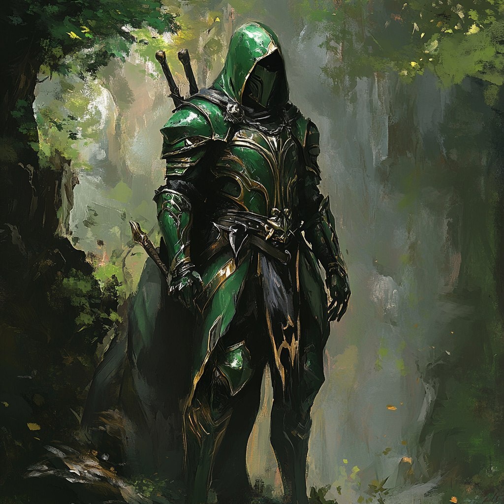 Создано на основе запроса: Elf, Knight, Green and Black Armor, Guard
