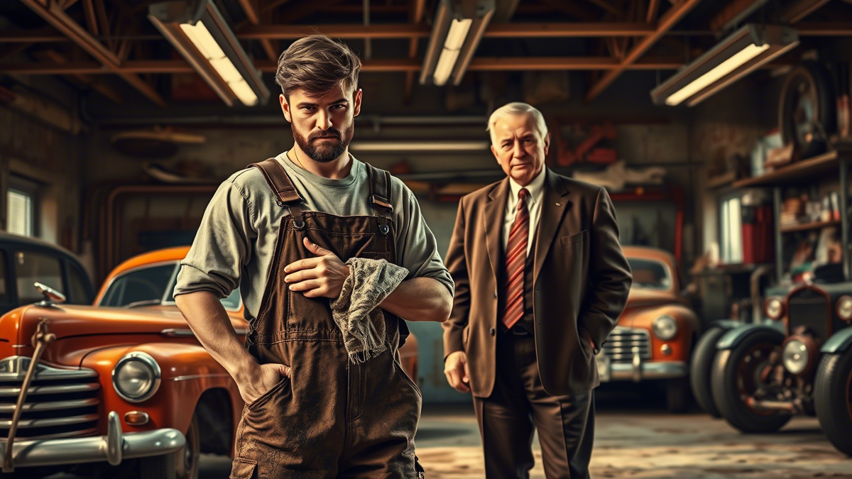 Каждый день Джейкоба Тёрнера начинался одинаково: звон будильника в шесть утра, крепкий кофе и дорога на станцию техобслуживания «Гараж 42». Он любил свою работу — запах машинного масла, тяжесть инструмента в руках, довольные лица клиентов, когда он возвращал их «железных коней» к жизни. Здесь, в маленьком городке Бруксвилле, он был просто хорошим механиком, а не кем-то особенным. Он не знал своего отца. Мать, Лора, никогда не говорила о нём, а Джейкоб, выросший в скромном доме на окраине, не настаивал. Ему хватало её любви, работы и чувства, что он всего добивается сам. Но однажды всё изменилось. В тот день в «Гараж 42» въехал роскошный «Кадиллак». Из него вышел высокий мужчина в идеально сидящем костюме. В мастерской на мгновение воцарилась тишина — такие клиенты здесь не появлялись. — Джейкоб Тёрнер? — спросил незнакомец, и его голос прозвучал как удар колокола. Джейкоб вытер руки тряпкой, оставив на ткани тёмные пятна масла. — Это я. Чем могу помочь? Мужчина медленно подошёл ближе.
