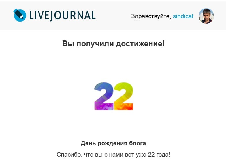 Меня тут "Живой журнал" поздравил.