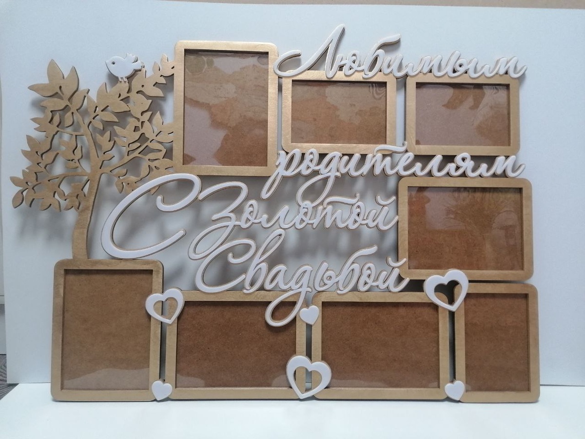 Давненько у нас не было заказов на фоторамки😉 И вот интересный заказ: на подарок родителям изготовили фотопанно из 8 фоторамок. 5 под фото 13х18 см и 3 рамки под фото 10х15 см. Получилось 😍, кажется, отлично👍 Сама рамка деревянная, размер 82х60 см, покрыта золотом, декор из молочного акрила. Для фоторамок использовался прозрачный ПЭТ, сзади металлическая фурнитура и крепления.