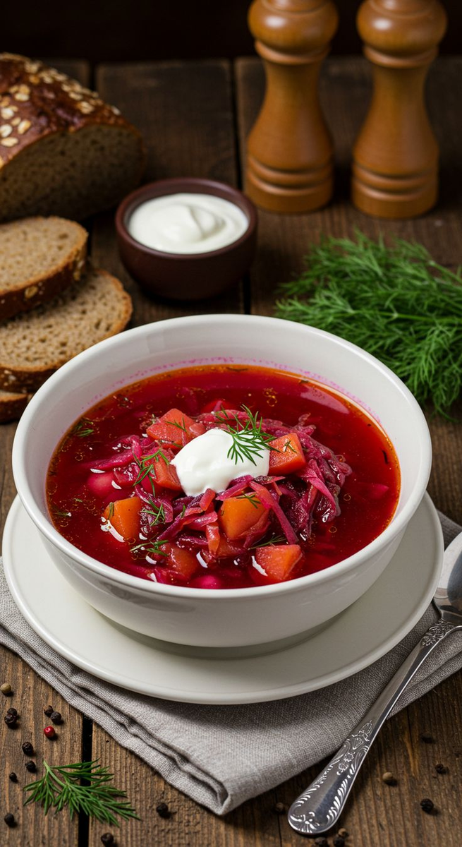 Борщ — одно из самых любимых и узнаваемых блюд восточноевропейской кухни. Его варят в Украине 🇺🇦, России 🇷🇺, Польше 🇵🇱, Беларуси 🇧🇾, но у каждого региона — свои традиции приготовления. Густой, ароматный, с насыщенным вкусом, борщ может быть мясным 🥩, постным 🥬 или даже холодным ❄️. В этой статье разберём классический рецепт, его историю 📜, а также раскроем хитрости, которые сделают ваш борщ идеальным! ✨ 1. 🕰️ Истоки борща: от крестьянской еды до кулинарного символа Борщ известен ещё с древних времён: первые упоминания о похожем блюде встречаются в летописях Киевской Руси 📜. Название, вероятно, происходит от растения борщевик 🌿 (который раньше добавляли в суп), а со временем рецепт эволюционировал 🔄. В XIX веке борщ стал популярен среди всех слоёв населения — от крестьян 👨🌾 до дворян 👑. Его подавали на больших праздниках 🎉, а варианты приготовления различались в зависимости от региона: Украинский 🇺🇦 — с пампушками 🥖 и салом 🥓. Московский 🇷🇺 — с добавлением в