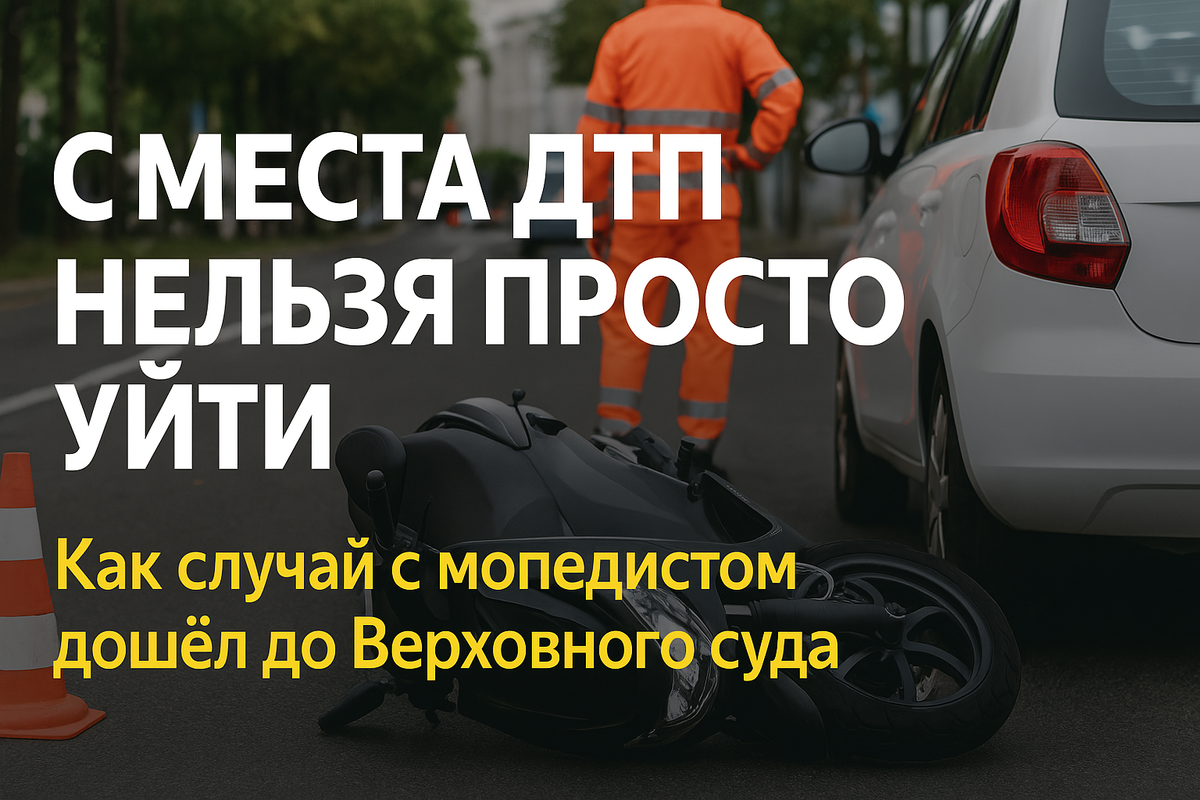 Если вы думаете, что можно просто уйти с места ДТП и избежать ответственности — спешу вас разочаровать. Недавнее постановление Верховного суда поставило точку в подобной ситуации, и прецедент получился поучительный. История звучит почти анекдотично: водитель мопеда попал в мелкую аварию с участием скутера. Позже он утверждал, что никакого столкновения не было, а второй участник сам "не удержался и упал". Сам мопедист с места происшествия не уехал, а ушёл пешком. По его словам — просто "не понял", что надо оставаться. Даже уточнял у сотрудника ГИБДД: "А надо было?" Но Верховный суд отнёсся к делу совсем не с юмором. Во-первых, факт ДТП всё-таки подтвердился: на суде были представлены доказательства, включая видеозапись, на которой видно, что водитель прошёл освидетельствование на алкоголь (и, кстати, подтвердил, что пил после происшествия). Во-вторых, сам факт ухода — без согласования с сотрудниками полиции — был расценён как оставление места ДТП по ч. 2 ст. 12.27 КоАП РФ. Это решение п