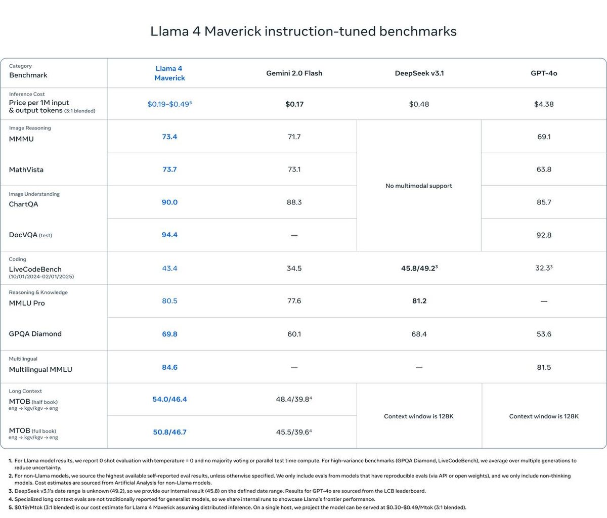 Представлено новое семейство моделей Llama 4. Вот основные моменты: – Scout. С контекстом в 10 миллионов токенов позволяет полностью загрузить произведения, как «Война и мир» и «Тихий Дон», и попросить о пересказе. – Maverick. Более мощная модель с контекстом в 1 миллион токенов. Она демонстрирует лучшие результаты в обработке текста и кода, обойдя в тестах GPT-4o. – Behemoth. Эта модель использовалась для обучения младших версий и по многим бенчмаркам превосходит GPT-4.5, Claude Sonnet 3.7 и Gemini 2.0 Pro. Scout и Maverick уже доступны для испытаний, в то время как Behemoth находится на этапе разработки. Подробности о Llama 4 можно найти здесь. Наш уютный канальчик 🤖 Анимация | СhatGPT-4 | Помощь с резюме