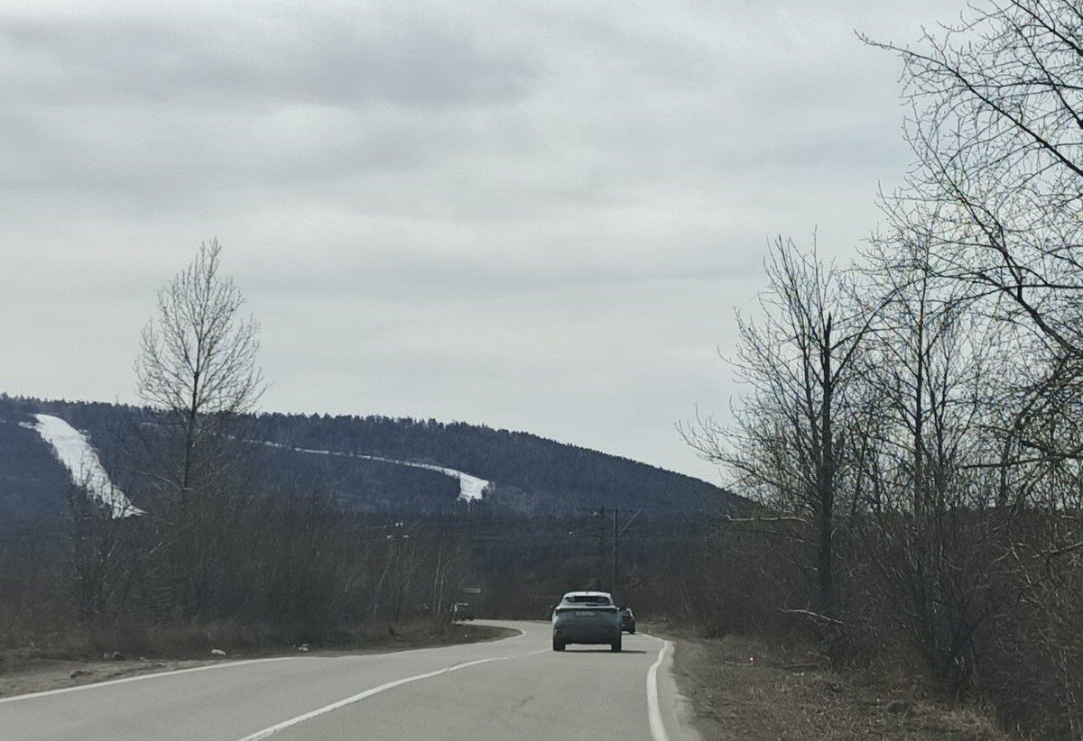 В горах ещё лежит снег. Это северный склон горы. Там проходит горнолыжная трасса. Едем дальше. Едем мимо деревни. В кадр попал вот такой симпатичный домик. В этой деревушке увидели вот такой небольшой храм. Золотые маковки храма блестят в лучах солнца. А это часовня. Здесь можно набрать лечебную минеральную воду. Она имеет гидрокарбонатно-хлоридный кальциево-магниевонатриевый или гидрокарбонатно-хлоридный кальциево-натриево-магниевый состав с минерализацией до 1,52 г/дм3. (Сведения из открытого доступа.) Едем дальше. Вдоль дороги - сосны. Густой лес. Лесная чаща. На участке вдоль дороги, около каменистых скал пробиваются к солнцу берёзки. Едем дальше. Приехали!!! На даче всё ещё спит. Вишня не спешит просыпаться. Холодно. Ждём! Должна пройти неделя. И на ветвях появятся долгожданные бело-розовые цветочки. Вот что голосовой помощник Алиса нам рассказала. У вишни почки простые, то есть либо цветковые, и из них только цветки образуются, либо вегетативные, которые дадут листья и