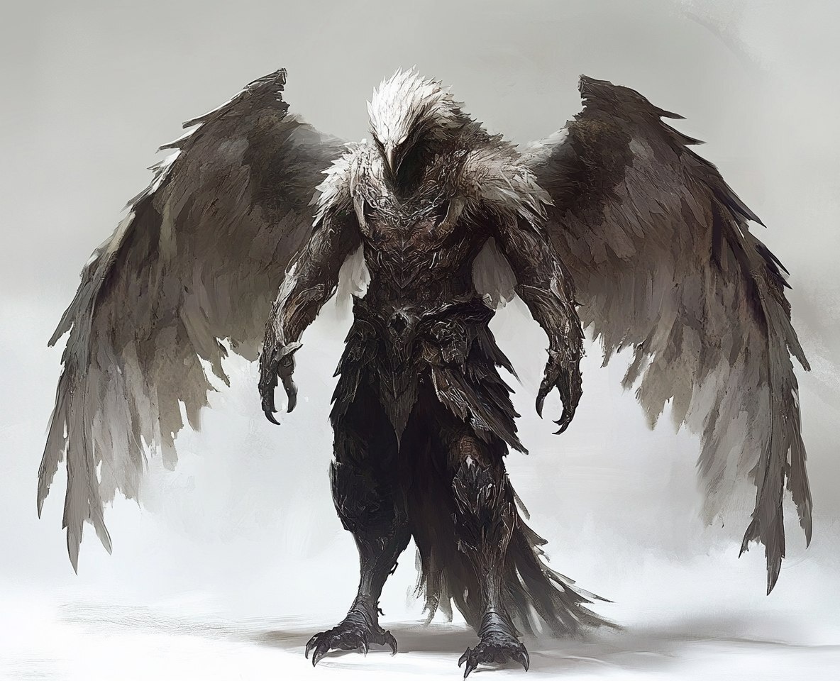 Создано на основе запроса: A winged creature with the head of an eagle and a body like that from the Monster Hunter game, full-body on a white background, a highly detailed illustration, soft shadows, low contrast, sharp focus, no textures, in the style of dark fantasy art. --- Автоперевод: Крылатое существо с головой орла и такого тела из игры Monster Hunter, всего тела на белом фоне, очень подробная иллюстрация, мягкие тени, низкий контраст, острый фокус, без текстур, в стиле темного фантастического искусства. Интересно получилось? 🤔 https://dzen.ru/id/65c0c65c86e4f837c27b24d7 #ИИ #AI #нейросеть #midjourney #art