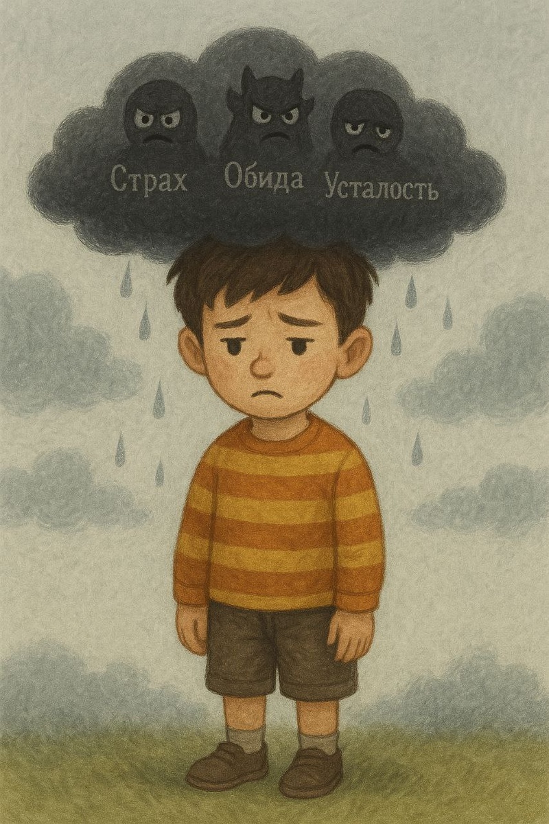 Сказка «Тучка в голове» Жил-был мальчик по имени Тимка. Он был добрым, умным и весёлым, но в последнее время с ним стало происходить что-то странное. Каждое утро, просыпаясь, он чувствовал в голове тяжёлую серую тучку. — Опять в школу… Наверняка всё пойдёт не так, — шептала тучка. — У меня всё получится! — пытался возразить Тимка. — Да кого ты обманываешь? У тебя опять ничего не выйдет… И стоило ему поверить этим словам — день становился серым и скучным. Он забывал тетрадки, ссорился с друзьями и чувствовал, что весь мир против него. Тучка становилась всё больше и тяжелее. Иногда она начинала моросить — тогда Тимке становилось грустно без причины. Иногда гремела — и он злился на всех вокруг. Однажды, гуляя в парке, Тимка увидел старика с добрыми глазами. Тот сидел на скамейке и рисовал солнце прямо на асфальте цветными мелками. — Зачем вы рисуете солнце, если на небе тучи? — спросил Тимка. — Потому что внутри меня — ясно, — ответил старик. — А если внутри ясно, то и снаружи ст