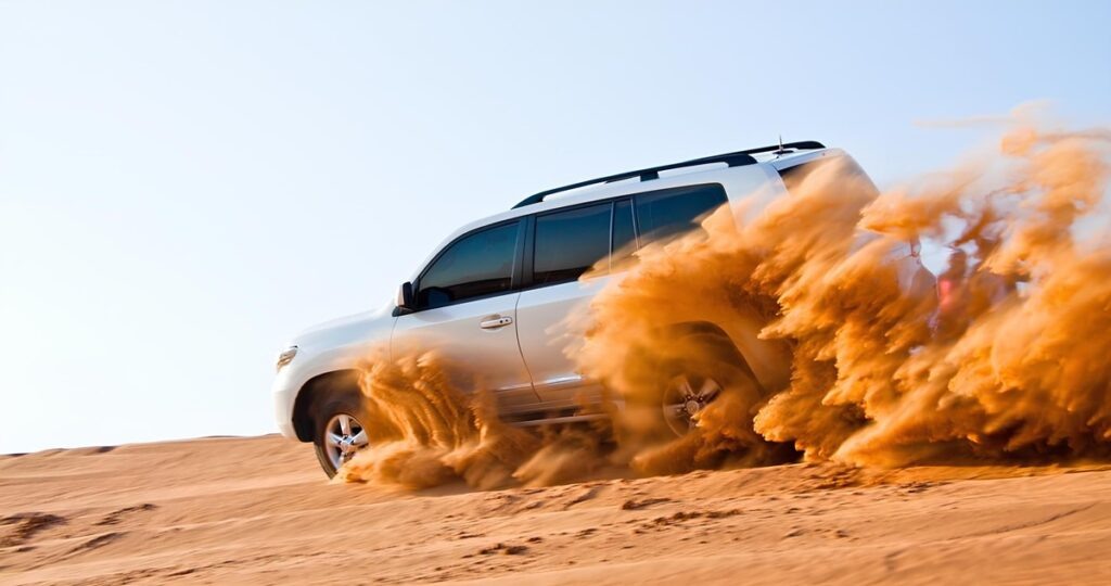 Почувствуйте себя настоящим исследователем пустыни! Вас ждёт захватывающее путешествие на джипе по бескрайним дюнам, где каждый поворот — это новый вызов, а каждый прыжок — порция адреналина. Смотрите, как солнце окрашивает песок в золотые и алые оттенки, а ветер рисует на песке причудливые узоры.