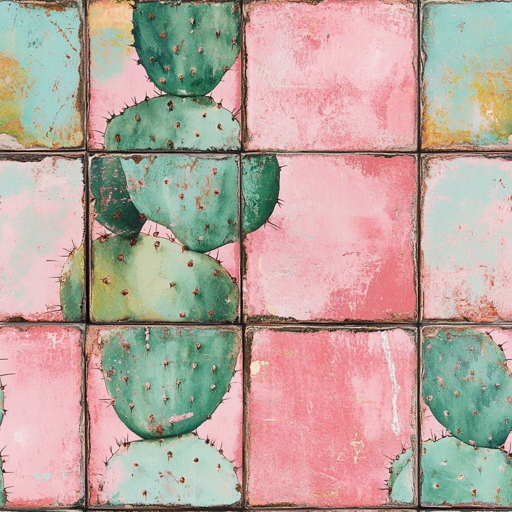 Создано на основе запроса: pink and green indie cactus texture ceramic tiles encaustic