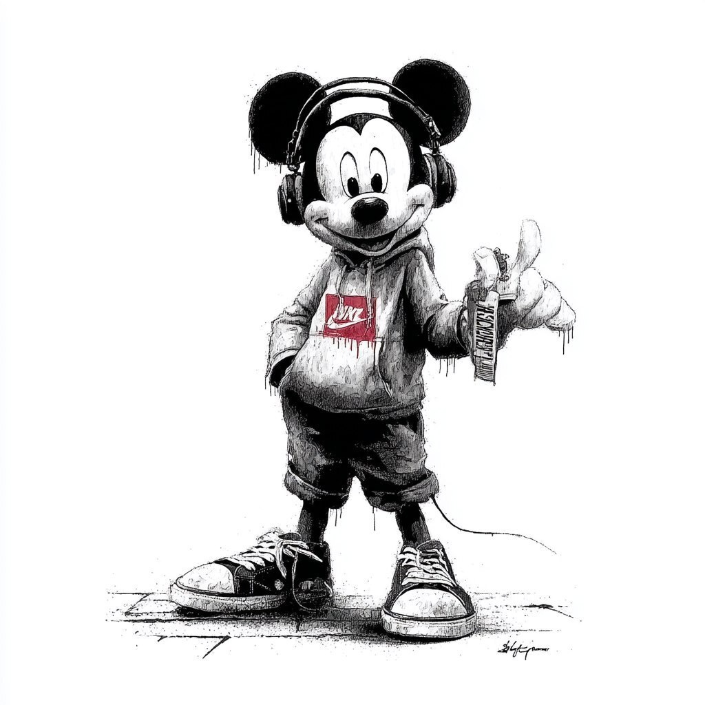 Создано на основе запроса: mickey mouse hip hop banksy style