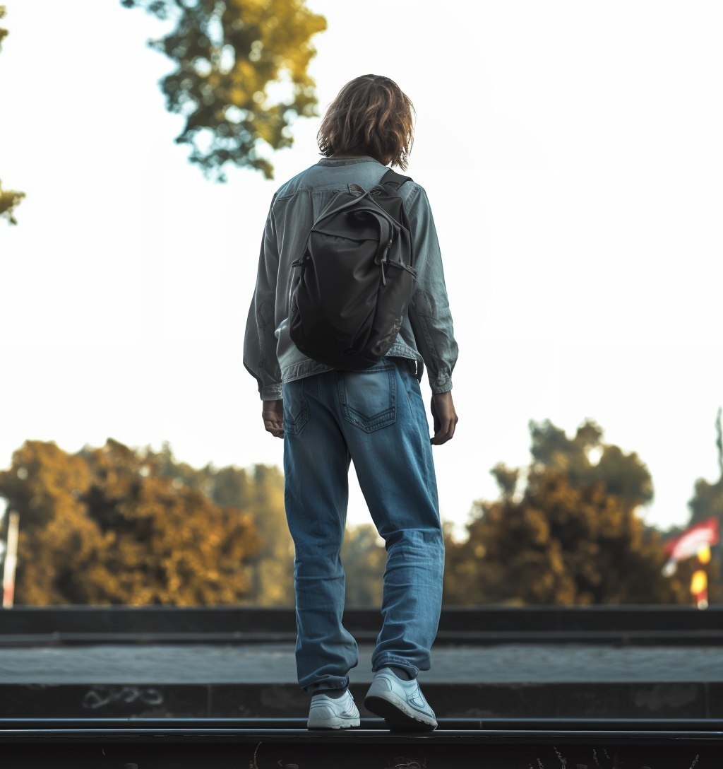 Создано на основе запроса: a medium sized black nylon rucksack hangs from his shoulder