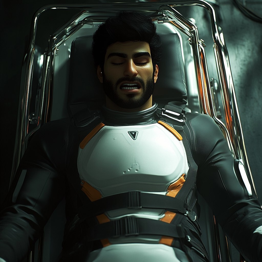 Создано на основе запроса: 2d-3d hybrid animation overhead shot of a man strapped onto a gurney, gritting his teeth and straining to break free. He is wearing a white thermal suit that has seen some wear and is ripped in parts. The lighting is soft but sinister. His clean-shaven face has a distinctive South-Asian indian look and he has an athletic build --- Автоперевод: 2D-3D Гибридная анимационная анимация выстрела человека, привязанного к камеру, стирая зубы и напрягаясь, чтобы вырваться на свободу. Какое твое мнение? 🤔 https://dzen.ru/id/65c0c65c86e4f837c27b24d7 #ИИ #AI #нейросеть #midjourney #art