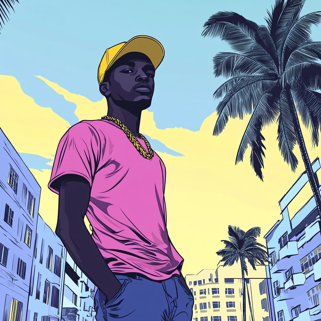 Создано на основе запроса: a comic style illustration of a black gay man in miami