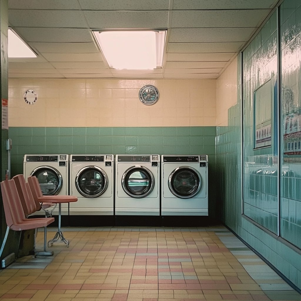 Создано на основе запроса: liminal retro laundromat 16:9