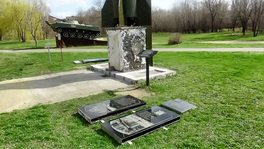 На одном из наиболее значимых экспонатов в парке Победы у здания администрации Камышина, а музей военной техники здесь находится под открытым небом, отвалились информационный доски.
