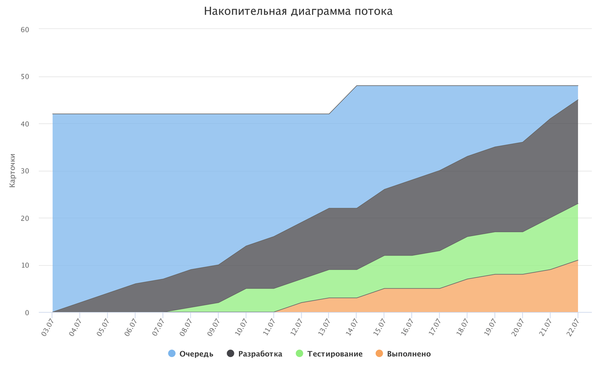 Сегодня расскажу о простом инструменте, который помогает видеть проблемы рабочих процессов буквально за минуту — это Cumulative Flow Diagram (CFD), или кумулятивная диаграмма потока задач.
