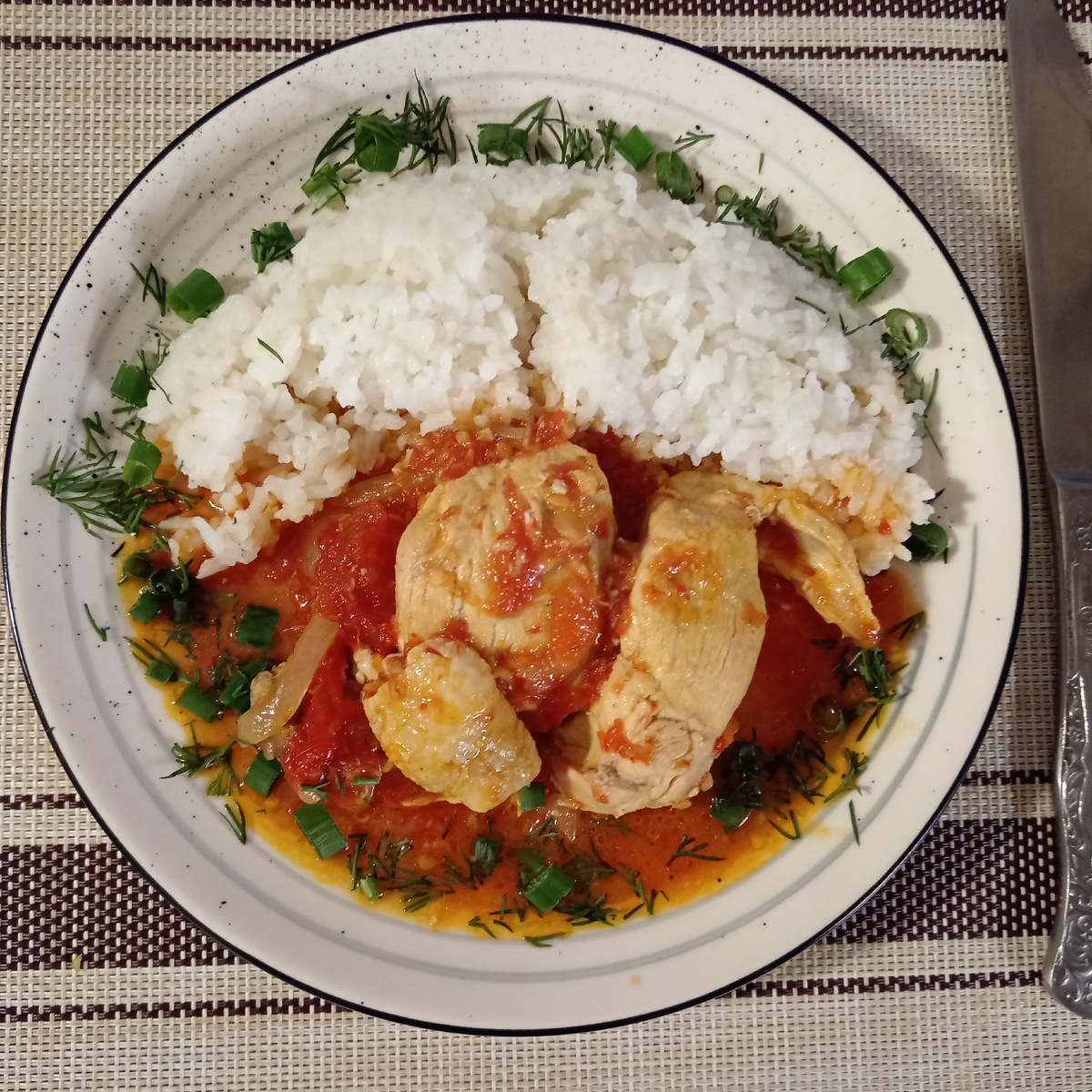 Попробуйте приготовить курицу по - восточному! Конечно, довольно острое блюдо получилось!
