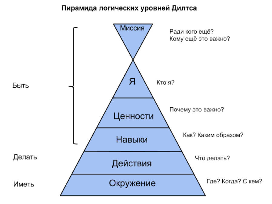 Американский психолог Роберт Дилтс выделил шесть уровней мышления, которые формируют нашу жизнь: