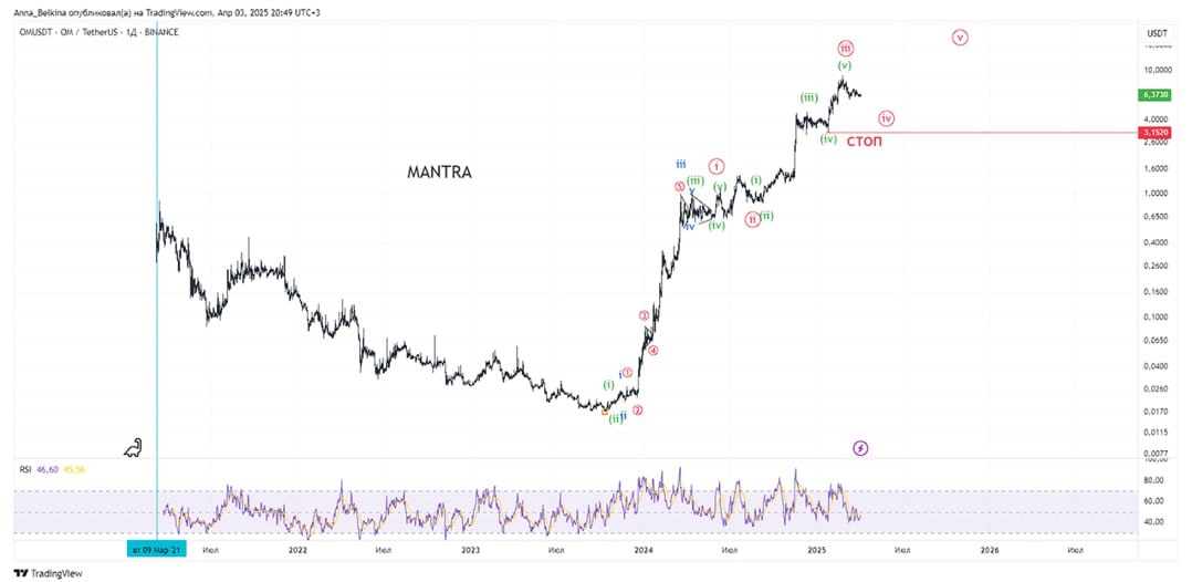 Разметки из видео по крипте по запросам подписчиков: https://dzen.ru/media/id/65b8789ff12bfe0796a26941/video-67eff53af4fc64265df44cac Mantra (#OM) Здесь еще может быть в развитии импульс, в котором формируется волна [iv], которая по нормам чередования должна принять вид боковой или острой коррекции. Также может быть формирование заходного в волне (v) of [iii]. Подробнее в видео. Не является ИИР