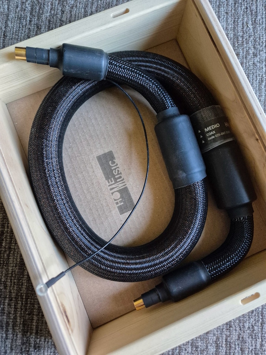 К чему описанное выше? Я ратую за короткий звуковой тракт, который минимально изменяет звук. Что значит минимально изменяет? Это значит, что "упрощение" исходного звука будет минимальным и меломан получит возможность приблизится к задумке звукорежиссера самым естественным способом. Это, на мой взгляд, единственная дорога к натуральному звуку. С другойсстороны, идеальные технические характеристики не приводят к идеальному звуку. Короткий тракт не значит дешевый, но звук короткого тракта всегда себя проявит с лучшей стороны. И вот, в коротком тракте кабели хорошо себя проявляют. После переезда в новое место жительства у меня пока (надеюсь) слабенькая система. Однако, заказы на новые кабели получаю. И даже эта система способна показать разницу при смене кабеля. Всего лишь требуется внимательное прослушивание. Последний заказ принял на коаксиальный кабель. Раньше их не делал, о чем заказчику сообщил. Чтобы быть уверенным в своём кабеле, кабеле своей конструкции (своего дизайна (речь не о внешнем виде), как принято говорить сегодня), рассматривал несколько вариантов. Взял ооочень простой китайский, собрал кабель на основе антенного кабеля 50ом волнового сопротивления, хорошие RCA двух моделей и свою новую конструкцию. Все сравнивалось в одном сэтапе и на одинаковых фрагментах музыки. В пользу тем, кто в кабели не верит: простой китайский проводок, приобретал его давно за 250₽, дал в режиме коаксиального соединения весьма приличный звук. Тонально ровный, четкий, с хорошей динамикой. Цифру ведь не обманешь. RCA звук цуточку проявил лучше, хотя их стоимости отличаются совсем не на чуточку. Кабель на антенном шнурке выпал из оценки: с ним звук простой и безликий. В новом коаксиальном кабеле искал вариант с проводниками. На фоне кабелей сравнения новый коаксиал просто хочется слушать. Даже не берусь описать разницу. Один момент стал определяющим.