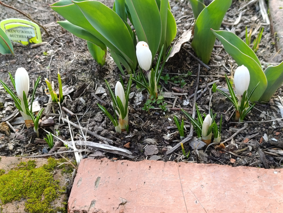 Приехала вчера с работы, а меня вот такие красавцы встречают. Крокусы Жанна Д'арк готовятся распускаться, все 5, осенью посаженные. А нынче, погляди в окно... Ну да, снег ожидали... Ну я снежок ожидала, а тут-то- СНЕЖИЩЕ! Одела зимние галоши и пошла в обход. Совушки шапки одели. Муравей стоит с лопатой, приготовился дорогу к своей муравьихе прокапывать. А она, бедняга, никак не выберется. Белое покрывало апреля... Сидит Карл на мосту, мёрзнет. Жалко мне его стало, приодела, как в Калининграде его наряжают. Я этой зимой таких метелей не припомню, как сейчас. А как же Жанна Д'арк? Стойко переносит невзгоды! А снег всё метёт и метёт. Ничего, скоро и на нашей улице будет весна! Совсем скоро, думаю, это последнее природное испытание. Вчера Сергей, идя с работы, на обочине дороги встретил ёжика. Малыш пытался зарыться в пучок сухостоя, прятался от холода. Сережа закутал его в свой свитер и принес домой. На дороге бы его раздавили, да и на улице ещё холодно и голодно для ёжиков. Мне давно