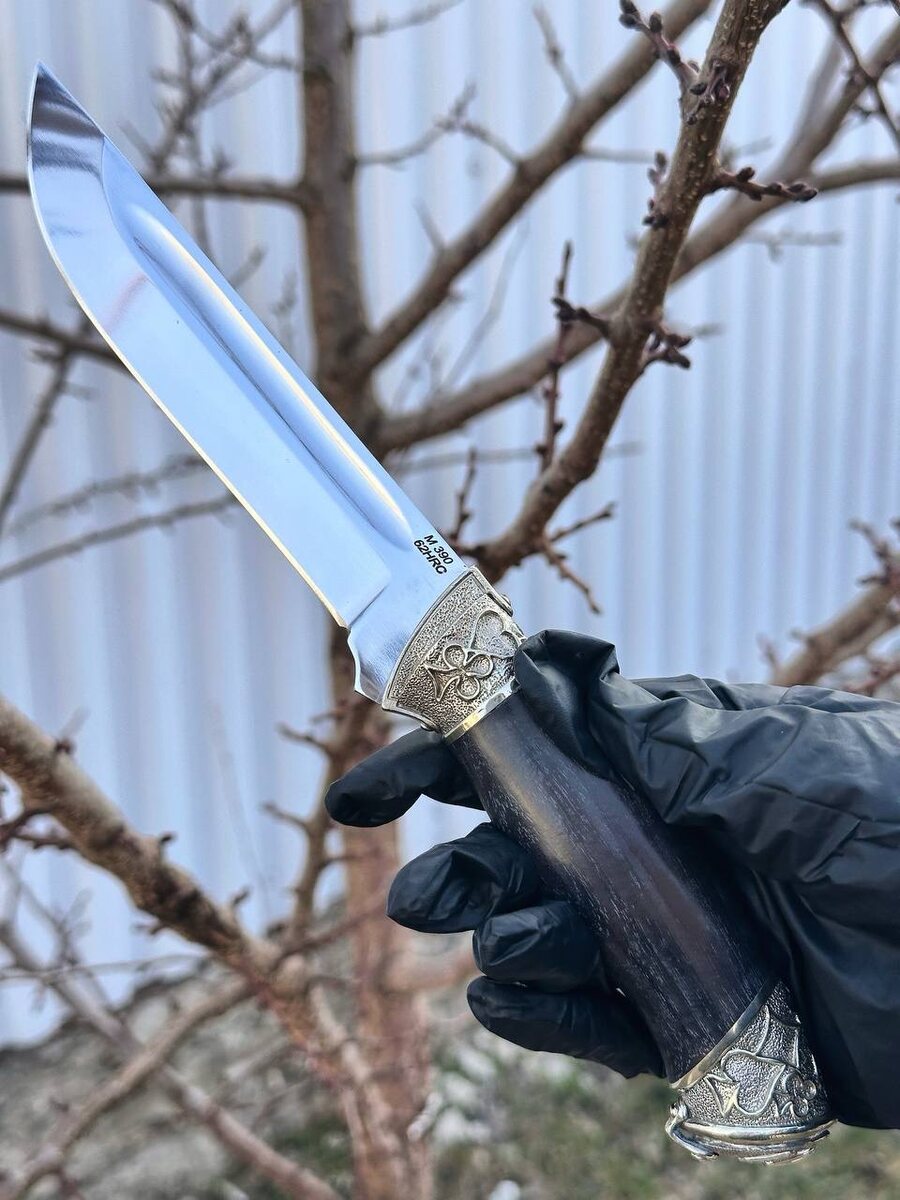 М390 Bohler - одна из лучших нержавеющих порошковых сталей на сегодняшний день ! Высокая твёрдость 62 HRC и одновременно высокие пластичность и ударная вязкость (это, кстати, не значит, что ножом можно колотить как топором по всему подряд), эти показатели отличают М390 от порошковых сталей предыдущих поколений. Нож Боец. Клинок М390 Bohler Uddeholm Рукоять дерево черный граб и мельхиор Дол на клинке, полировка в зеркало, заточка до бритвенного состояния. Ножны в комплекте. Цена по акции по 30 апреля 19344 руб. Обычная цена 24180 руб. Можем изготовить формованные ножны из кожи растительного дубления (+ 8000 руб.) Для заказа писать на @Nazarklinokbot или по тел +79101343831, WhatsApp