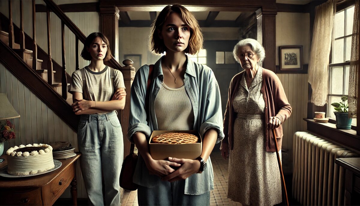 — Ну, опоздала на восемь минут, но всё же не на час, — ворчит бабушка, поджав губы. — Давай проходи. Какой тортик?
