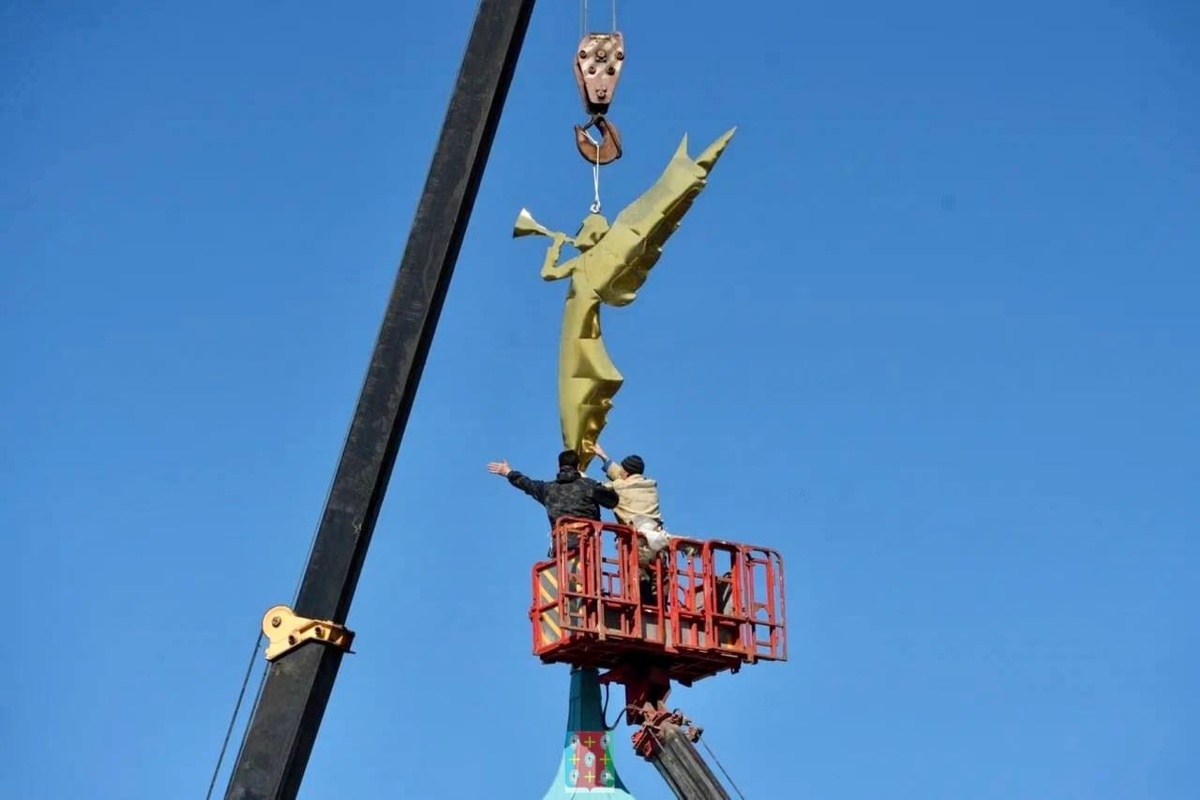 📝В Оптиной пустыни установили трубящего Ангела Как сообщили в администрации Козельского района в субботу, 5 апреля, завершилась реконструкция исторического символа монастыря. В дореволюционной Оптиной Пустыни фигура трубящего Ангела украшала главный вход — Святые врата, рассказали в монастыре. После революции эту фигуру утратили, и с возрождением монастыря её заменила деревянная копия. Однако со временем она обветшала и перестала выполнять свою функцию флюгера, указывающего направление ветра. В ходе реконструкции фигуру Ангела изготовили из особо прочного металла и оснастили уникальным вращающимся механизмом. Он обеспечивает лёгкость движения и прочность крепления даже при сильных порывах ветра.