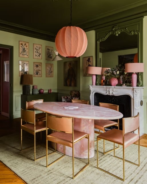 Посмотрите, какое смелое решение: темный потолок и светлый пол. Обычно говорят, что подобные решения могут немного дезориентировать. Мы привыкли, что все должно быть наоборот. А еще зеленый! Цвет этот конечно люблю, но в интерьере отношусь к нему очень настороженно. Хозяйка квартира Тифен Вердье признается, что три раза перекрашивала комнату, прежде чем добилась результата, который ее устроил. Она дизайнер одежды, но как видим, создает довольно интересные цветные интерьеры. Между тем, когда она приобретала эту квартиру, все стены были белыми. И обязательно в квартире присутствуют вещи с блошиных рынков. Сейчас интерьер без таких находок не заинтересует ни один глянцевый журнал или интерьерное сетевое издание. Это настоящий мейнстрим.
