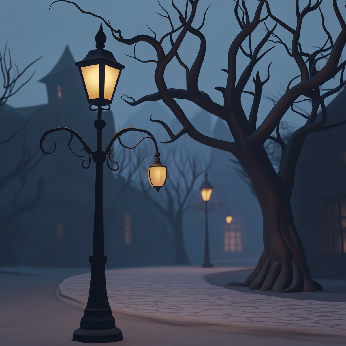 Создано на основе запроса: A 3d street lamp, do not add a tree, just a street lamp in a 3d editable style that matches the Nightmare Before