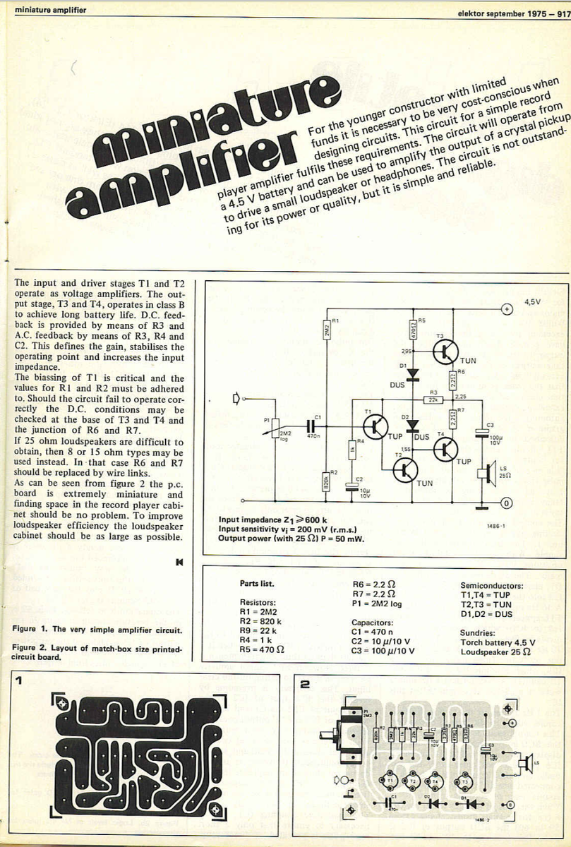 Сегодня мы поговорим и посмотрим, что собирали зарубежные радиолюбители в 70-х годах прошлого века. На моем канале на эту тему есть большая и интересная подборка: «Что собирали радиолюбители в прошлом веке» и там можно найти несколько статей с обзорами из болгарских журналов «Радио и телевизия», начинались обзоры с этой статьи: «Чем занимались и что собирали зарубежные радиолюбители в 60-х годах прошлого века.». В этой статье мы ознакомимся, с наиболее интересными на мой взгляд публикациями, из популярного англоязычного журнала «Elektor». Первоначально журнал издавался в Нидерландах под названием Elektronica Wereld в 1961 году и позднее Elektuur в 1964 году. Англоязычное издание Elektor было выпущено в 1975 году и читается во всем мире. Я надеюсь, что английский текст не вызовет затруднений у большинства моих читателей. Начнем сегодняшний обзор со статьи о простом УНЧ для высокоомного динамика. Совсем недавно я собирал FM радиоприемник в корпусе от детского радиоконструктора «ЗОРЬКА»