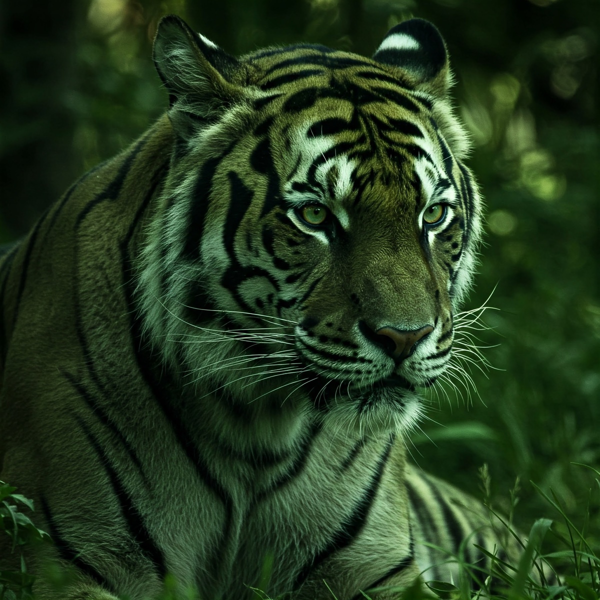 Тигры незаметно подкрадываются к другим животным благодаря нескольким факторам, которые делают их практически невидимыми в высокой траве: 1. Камуфляж: * Полосы: Вертикальные полосы на шерсти тигра являются примером так называемой разрушающей окраски. Они разбивают контур тела животного, делая его менее заметным на фоне вертикальных линий травы и деревьев, а также в условиях пятнистого солнечного света и тени. * Цвет: Хотя тигры кажутся нам оранжевыми, их основная добыча, такая как олени и другие копытные, имеет дихроматическое зрение. Это означает, что они видят мир в основном в оттенках синего и зеленого. Для них оранжевая шерсть тигра выглядит скорее зеленовато-коричневой, что отлично сливается с окружающей растительностью. 2. Манера передвижения: * Бесшумность: Тигры обладают мягкими подушечками на лапах, что позволяет им передвигаться практически бесшумно, крадучись сквозь траву. * Медленное и осторожное сближение: Они могут очень долго и терпеливо подкрадываться к своей добыч
