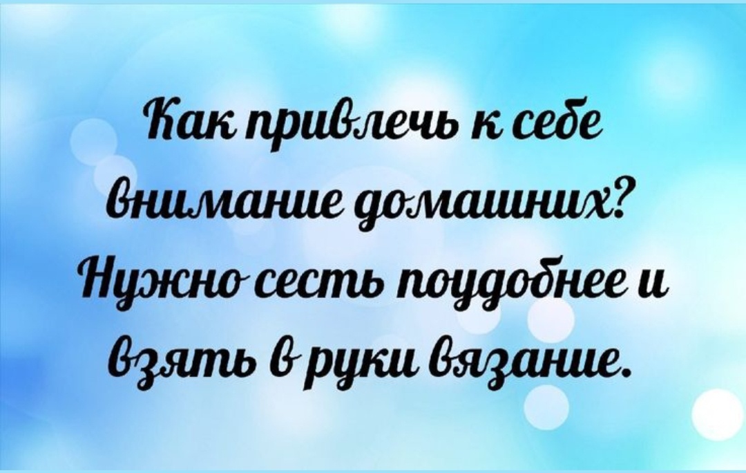 Приветствую всех любителей вязания и не только! Если ты рукодельничаешь, и уже не представляешь дня, проведенного без своего любимого хобби, это говорит только об одном: ты увлечена по уши 😄 Окружающие, наблюдающие за такими увлечённым, создают анекдоты , смешные высказывания. Давайте проверим, насколько это про нас 🙂 Часто так бывает, всё сделано, все накормлены, но стоит сесть и взять в руки вязание, обязательно кому-то что-то срочно нужно от тебя 😁 Знакомо, знакомо 😉 В муках творчества 😊 Точно, мы вяжем то, что нам хочется 😉 😄 конечно! У женщины всегда в шкафу живёт:"Чтобы надеть?! Вещей много, а надеть нечего!" Мы все Богини, особенно пряжи!😍 Когда творчество загоняют в рамки, то уже не хочется творить🙂 Пусть этот "зверь" живёт в голове каждой рукодельницы 🥰 Улыбнулись?! Замечательно 👍 Пусть всегда будет прекрасное настроение. До новых встреч 🤗
