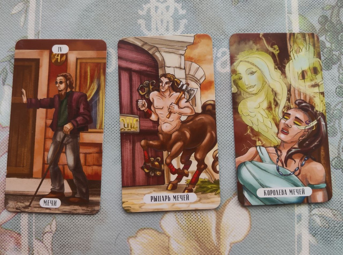 Сегодня, в этот воскресный день, мы заглянем в мир Таро и раскроем тайны трёх мощных арканов: Четвёрки Мечей, Рыцаря Мечей и Королевы Мечей. Эти карты, словно три мудрых учителя, поведают нам о том, как провести этот день с умом и радостью! 💖💰