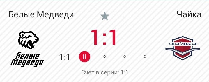 Первый период позади. Пока ничья. Начало матча осталось за хозяевами , которые сходу захватили инициативу и начали планомерно атаковать ворота Марата Сабитова, но затем у хозяев случились подряд два удаления и в формате 5×3 Андрею Крутову удалось открыть счет! В дальнейшем хозяева имели небольшое преимущество по ходу матча. В итоге ближе к концу периода из-за активных действий соперника у "Чайки" также подряд удалились Леонид Гаврилов и Кирилл Свищев, чем хозяева и воспользовались, реализовав большинство также в формате 5×3.