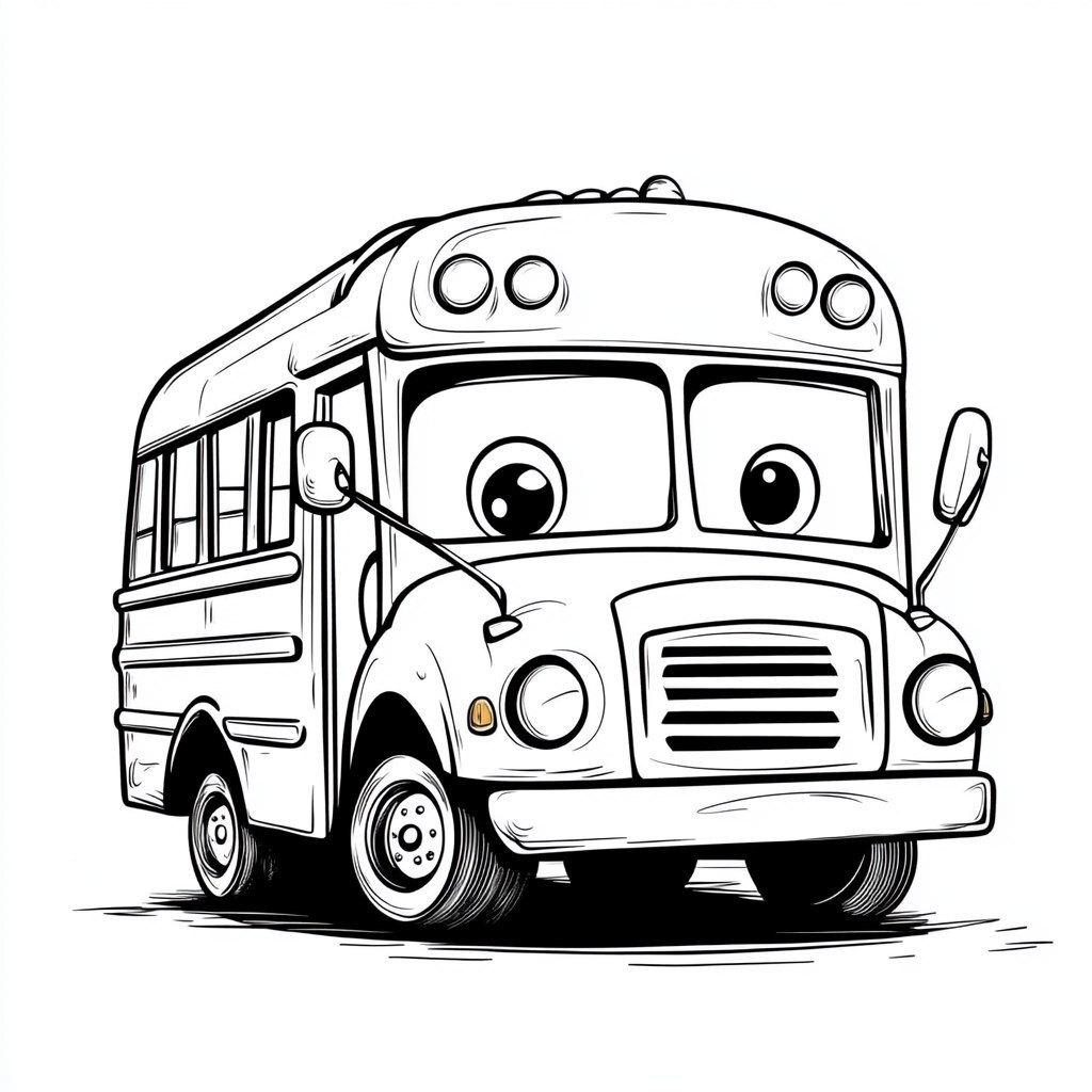 Создано на основе запроса: a cute cartoon school bus character, line art coloring book for kids