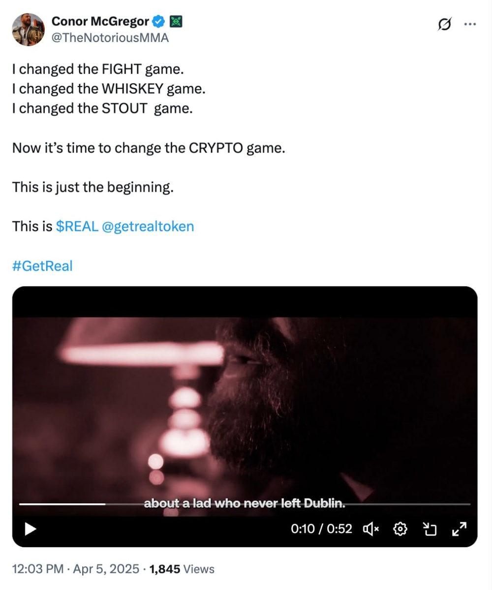 🔥Коннор Макгрегор запускает мемкоин $REAL: этапы продажи и листинга