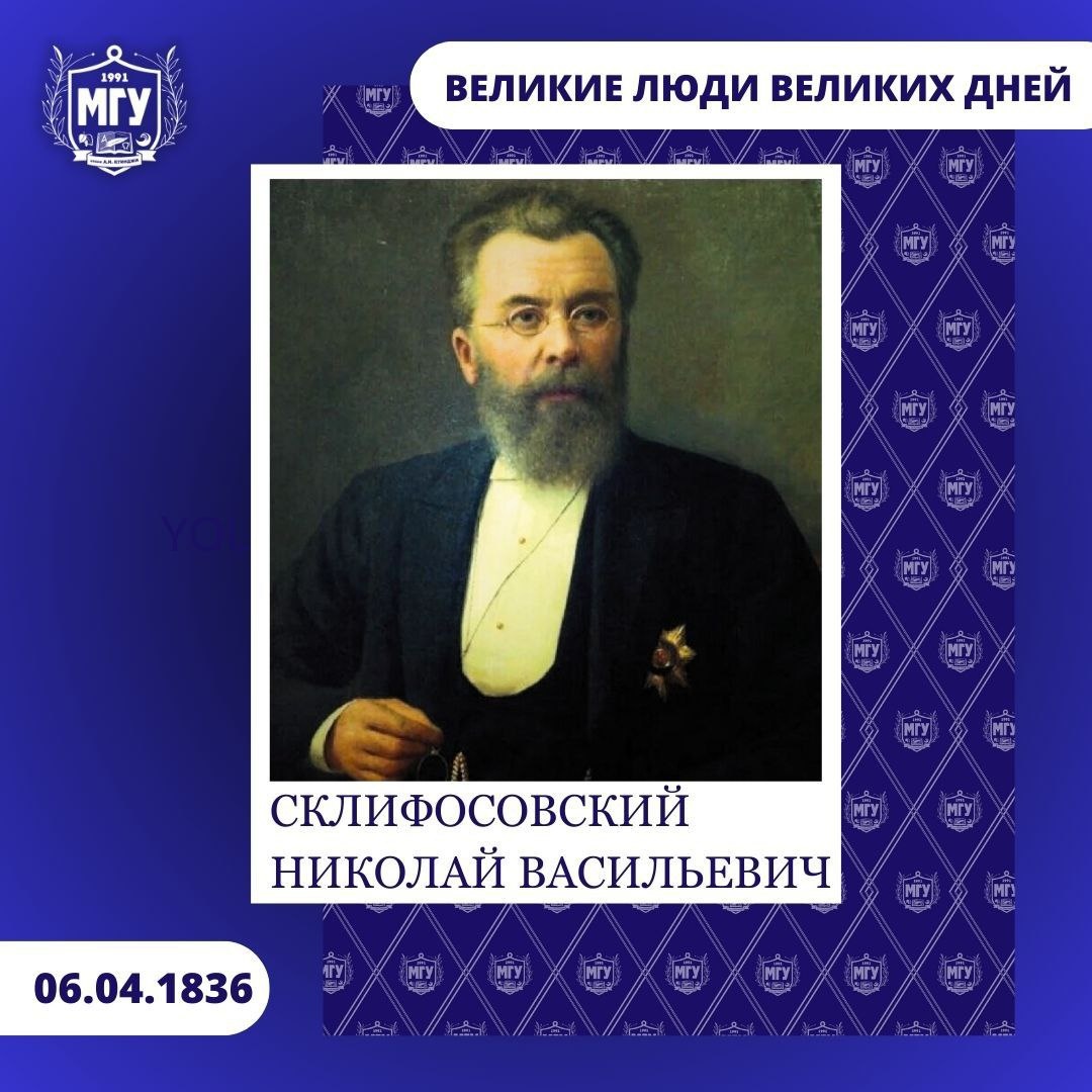 Почти 200 лет назад, 6 апреля 1836 года, родился выдающийся врач-хирург, учёный-новатор, военный врач Склифосовский Николай Васильевич.