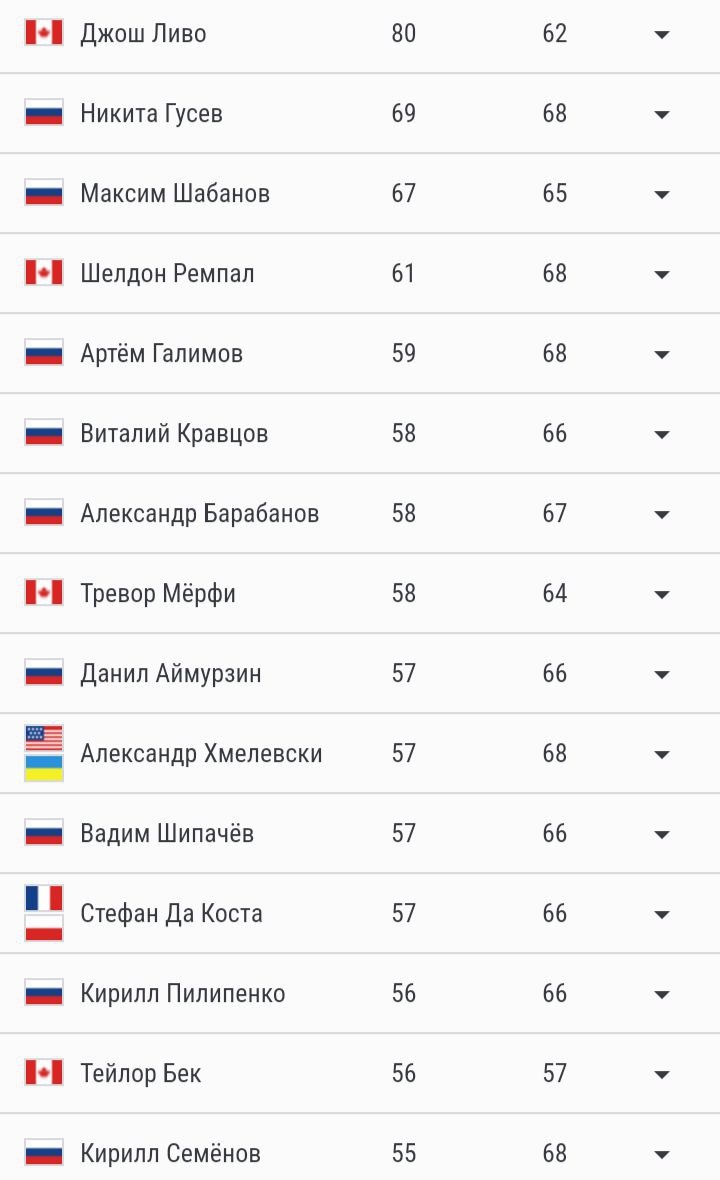 Таблица бомбардиров КХЛ.