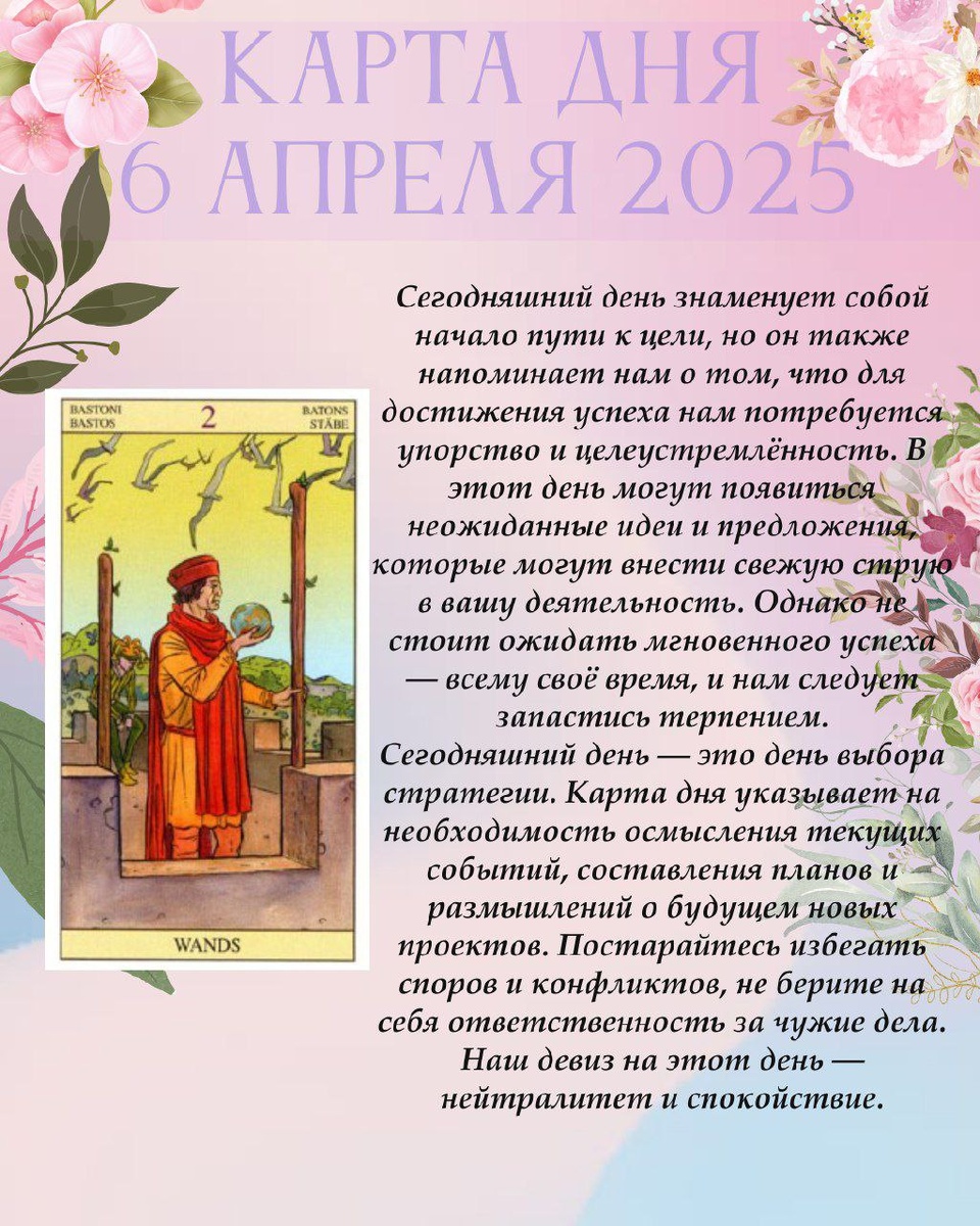 КАРТА ДНЯ 6 АПРЕЛЯ 2025
