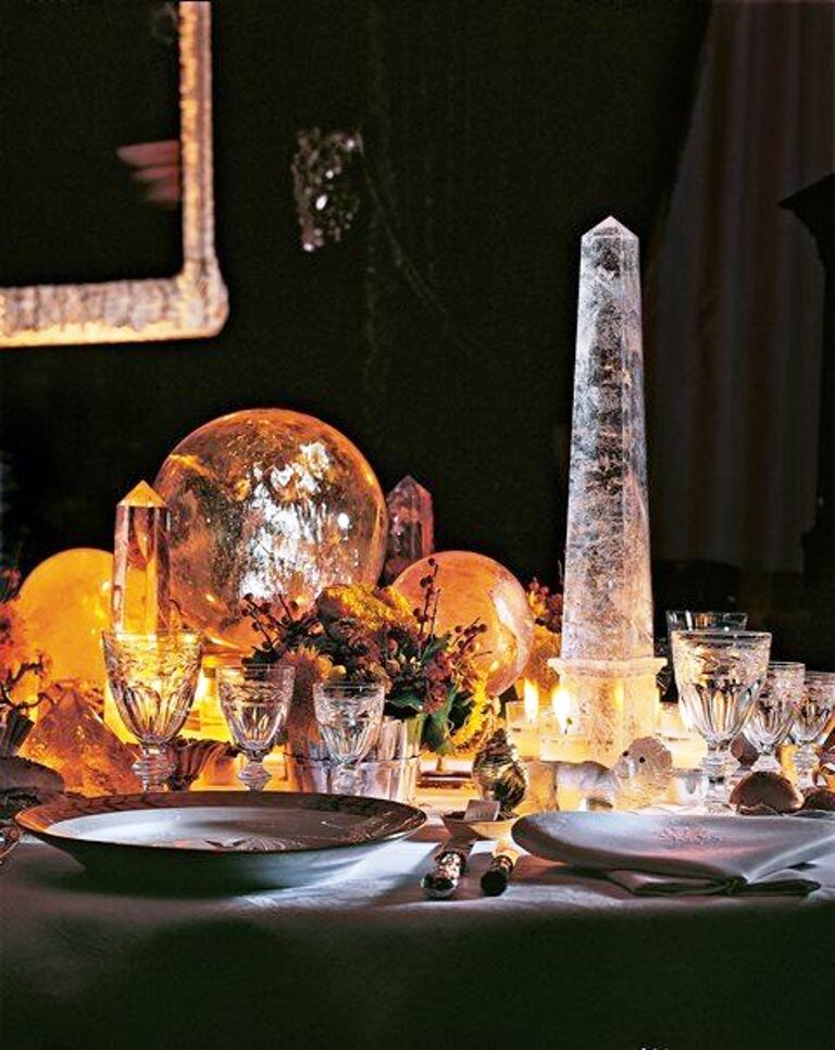 Серебряные блюда отсвечивают мягким светом свечей. Стекло, фарфор, ткань — всё подчинено ритуалу. Гости рассаживаются, звучит лёгкий звон посуды, и начинается спектакль. Но самый загадочный актёр в этом представлении стоит молча. Он не подаёт знаков, не участвует в трапезе — он просто есть. Высится над буфетом, замыкая визуальную ось комнаты: небольшой, изысканный, тщательно вырезанный из мрамора или инкрустированный камнем, он напоминает египетский обелиск. Миниатюрный символ вечности в сердце европейской столовой.