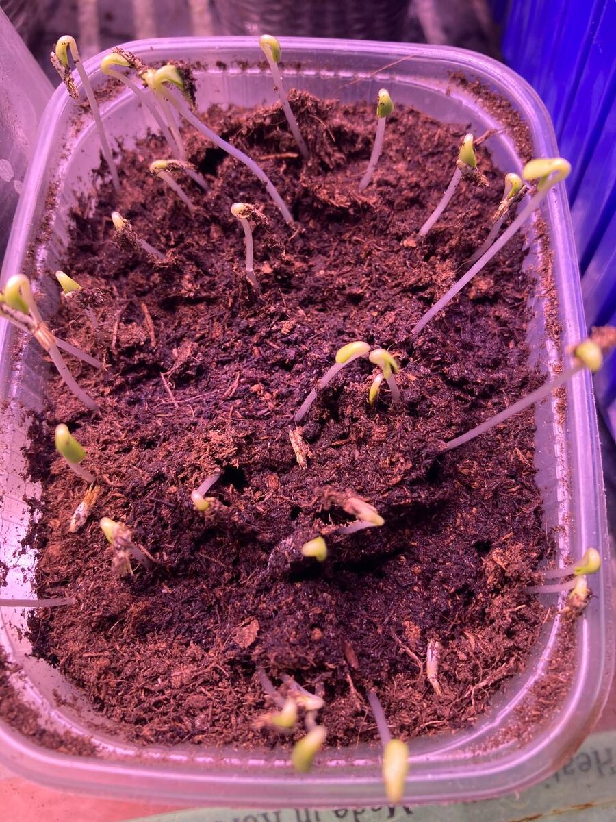 На фото всходы васильков… Я так увлеклась с посевами и случайно посадила васильки🤣 Ну думаю: - Что делать, уберу-ка я их в холодильник. Пусть сидят до мая. Ага, не прокатило🤣 Вчера заглянула к ним, а они мне тянут ладошки навстречу: «Привет!!!» 🌸🌸🌸🌸🌸🌸🌸