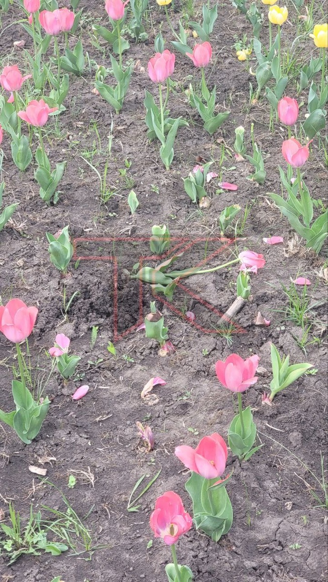 В Ботаническом саду сегодня очень много людей. Все пришли потоптать тюльпаны посмотреть на цветение 150 тысяч тюльпанов.