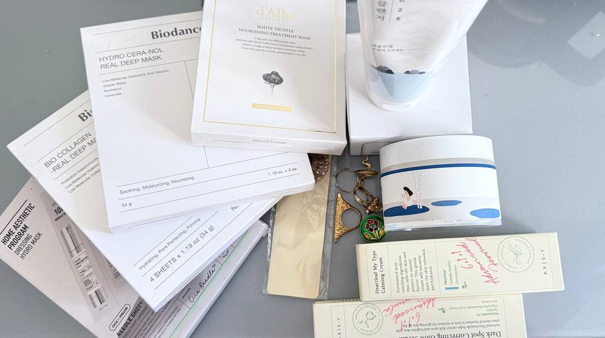 🤤 Индия и Корея подъехали наконец-то. Нина подарочки отправила. К слову, одна маска d’alba стоит у нас в 🍏430 р. В Корее упаковка из 5 штук стоит 600р. Ожидание того стоило 😍