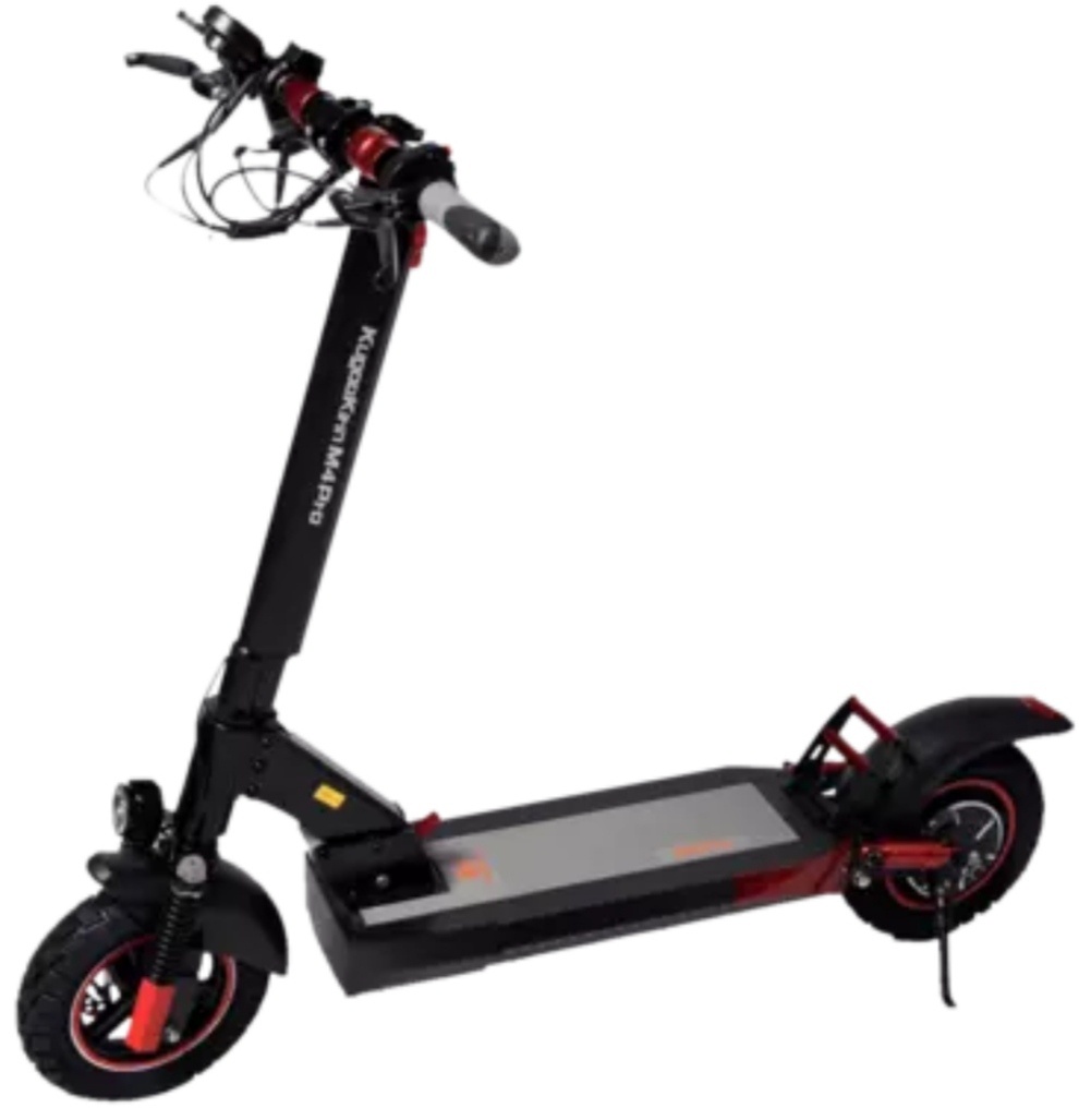 Kugoo M4 Pro — электросамокат, обновлённая версия модели M4, вышедшей на рынок в 2019 году. Электросамокат Kugoo M4 Pro производится на заводе Jilong (Китай). 1 Некоторые характеристики: мощность мотор-колеса — 600 W; 12 размер и тип колёс — 10 дюймов, надувные; 1 максимальная скорость под нагрузкой — до 50 км/ч; 1 время полной зарядки — 8 часов; 1 максимальный пробег на одном заряде — до 60 км; 1 ёмкость и напряжение АКБ — 18 Аh, 48 V; 1 вес самоката с сиденьем — 25 кг; 1 максимальная нагрузка — 150 кг; 1 преодолеваемый угол наклона — 30 градусов; 1 рабочая температура — от –10 до +40 градусов; 1 наличие и тип амортизаторов — пружинные спереди и сзади; 1 регулировка руля и сиденья по высоте — да; 1 тормоза — передний и задний, дисковые; 1 наличие подножки — да; 1 освещение — передняя фара, стоп-сигналы, поворотники сзади; 1 светодиодная подсветка деки — да; 1 вольтметр с ключом зажигания — да. 1 Самокат подходит для людей с весом более 100 кг, а также тем, кому комфортно передв