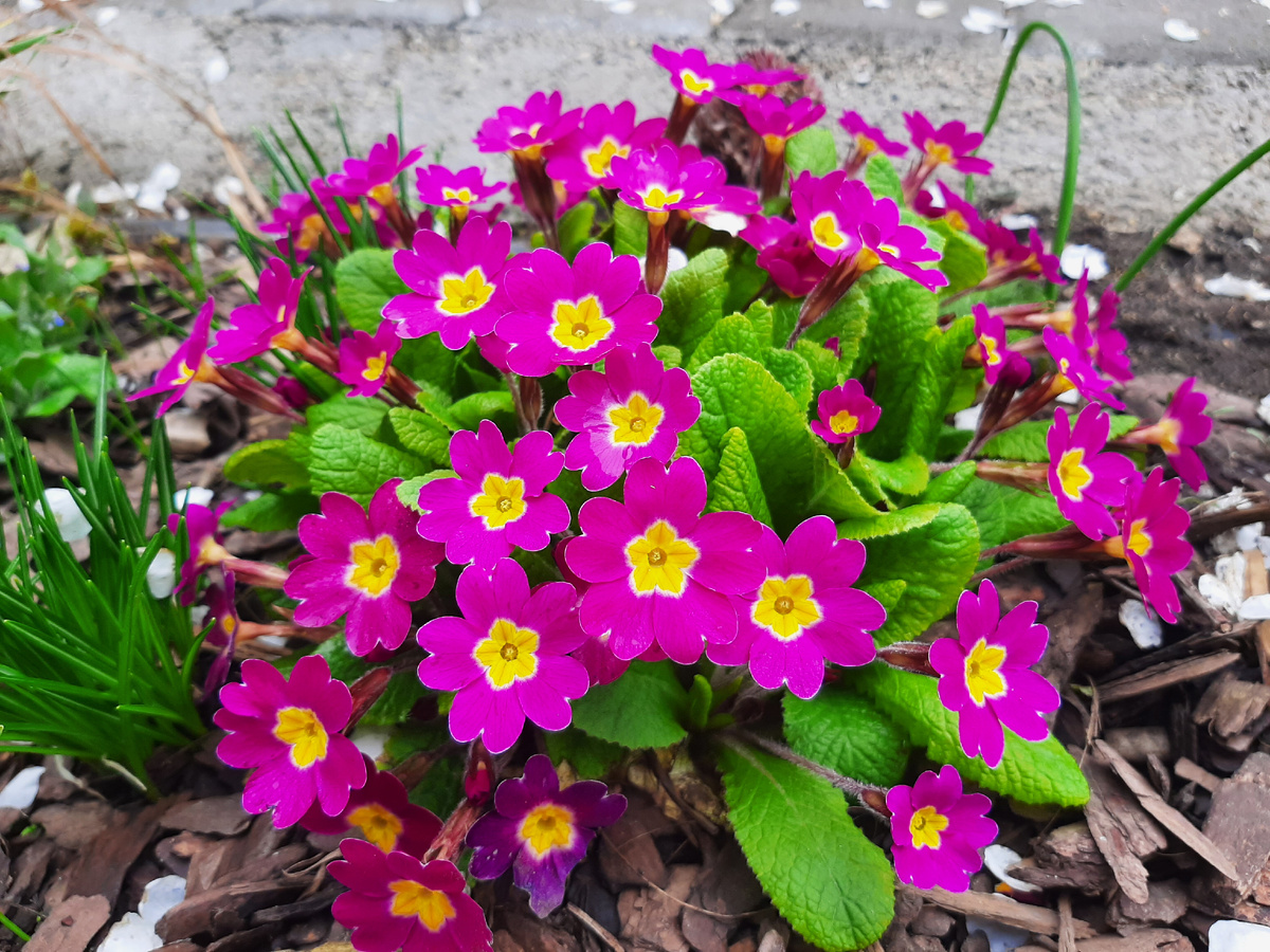 Что-то в этом году я совсем не уделила внимание своей постоянной обитательнице дорожки первоцветов и до сих пор не написала о примуле. Я уже упоминала, что моя примула беспризорница, она всегда, сколько я помню, росла в нашем ДНТ, а если мне хотелось увеличить её количество, я просто шла на соседскую заброшенную дачу и копала понравившиеся растения. Сеется она самостоятельно и, к сожалению, не всегда в нужных местах. Если вовремя не заметить маленький саженец, то позже уже проблематично её выковырять из чужих корней. На фото ниже примула с каким-то тюльпаном облюбовали место в корнях клематиса. Разбить эту троицу теперь можно будет только когда я соберусь пересаживать на другое место клематис, пока приходится мириться с таким самовольством. Цвести примула начинает ранней весной, пересекаясь в цветении с иридодиктумами. Успевает попозировать с пролеской. Пытается слиться по цвету с розовым морозником. Или, наоборот, сыграть с тем же морозником на контрасте. Может составить компанию «уст